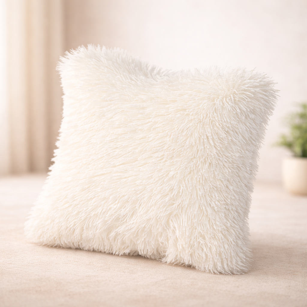 Almohadón Textura Natural Shaggy Blanca Boho ( 40 X 40 CM )