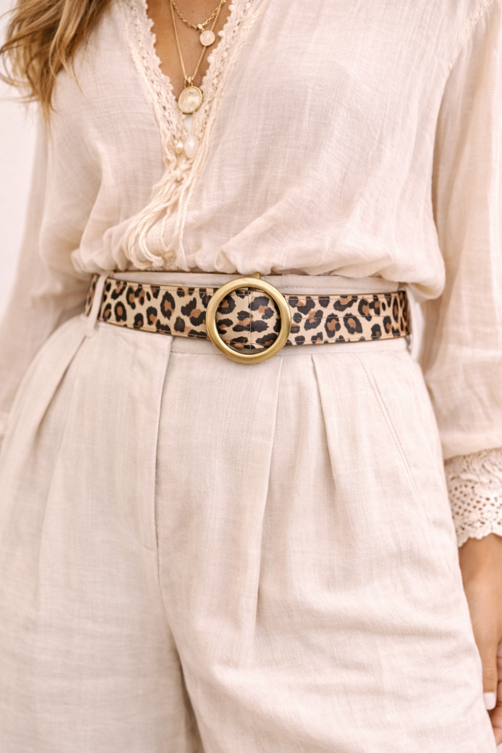 Ideal para marcar la cintura y elevar outfits neutros, logrando un equilibrio perfecto entre lo salvaje y lo sofisticado