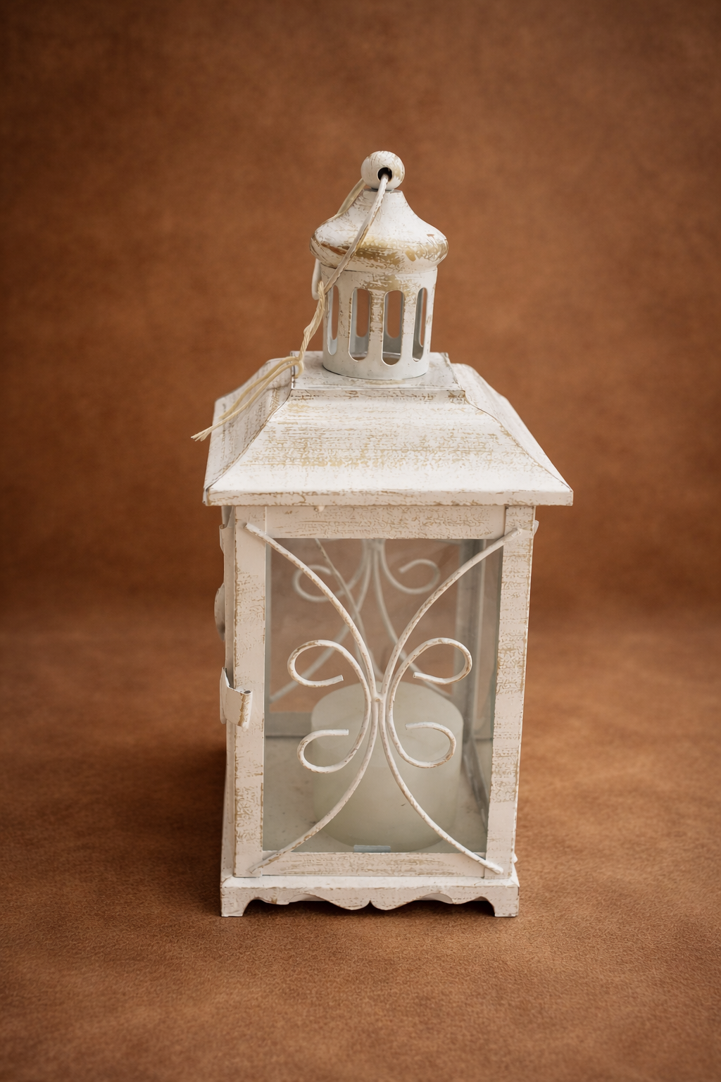 Este farol de estilo vintage en tono blanco desgastado aporta calidez, armonía y ese toque bohemio tan característico de Lumma.