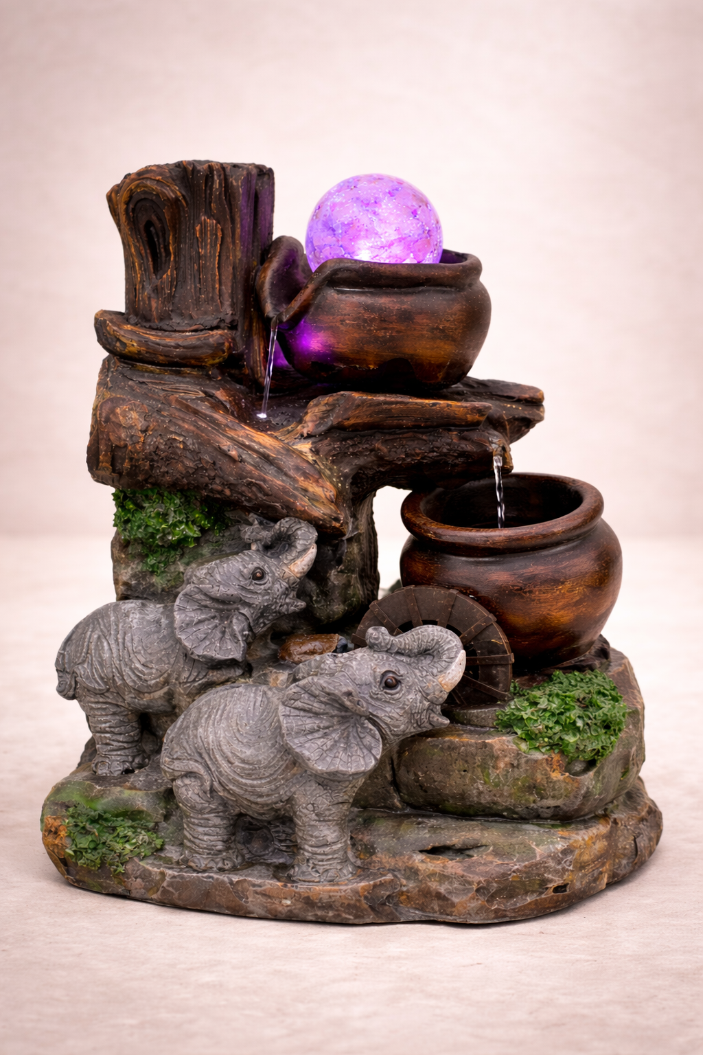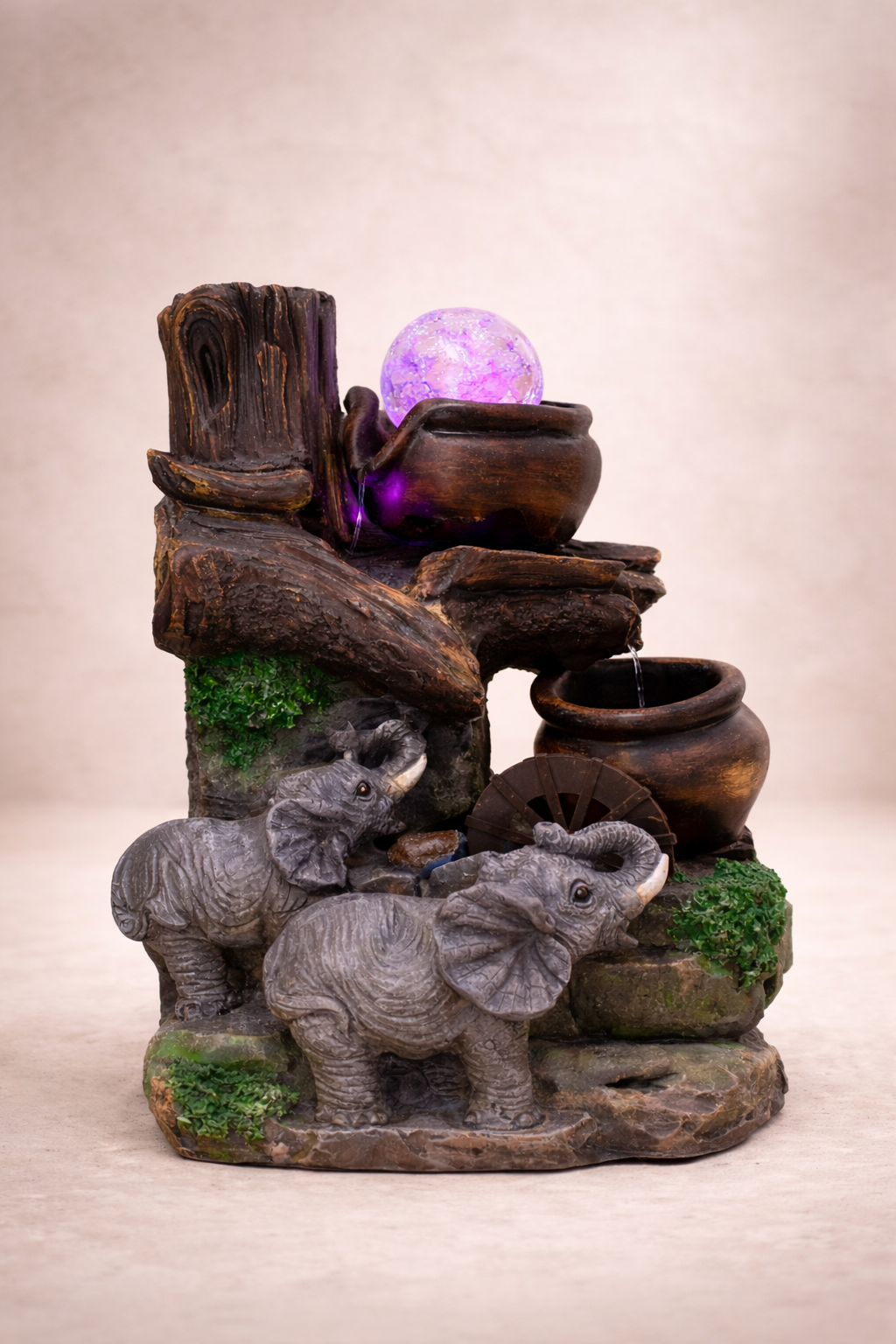 Fuente Decorativa Elefantes con Esfera LED y Cascada Zen