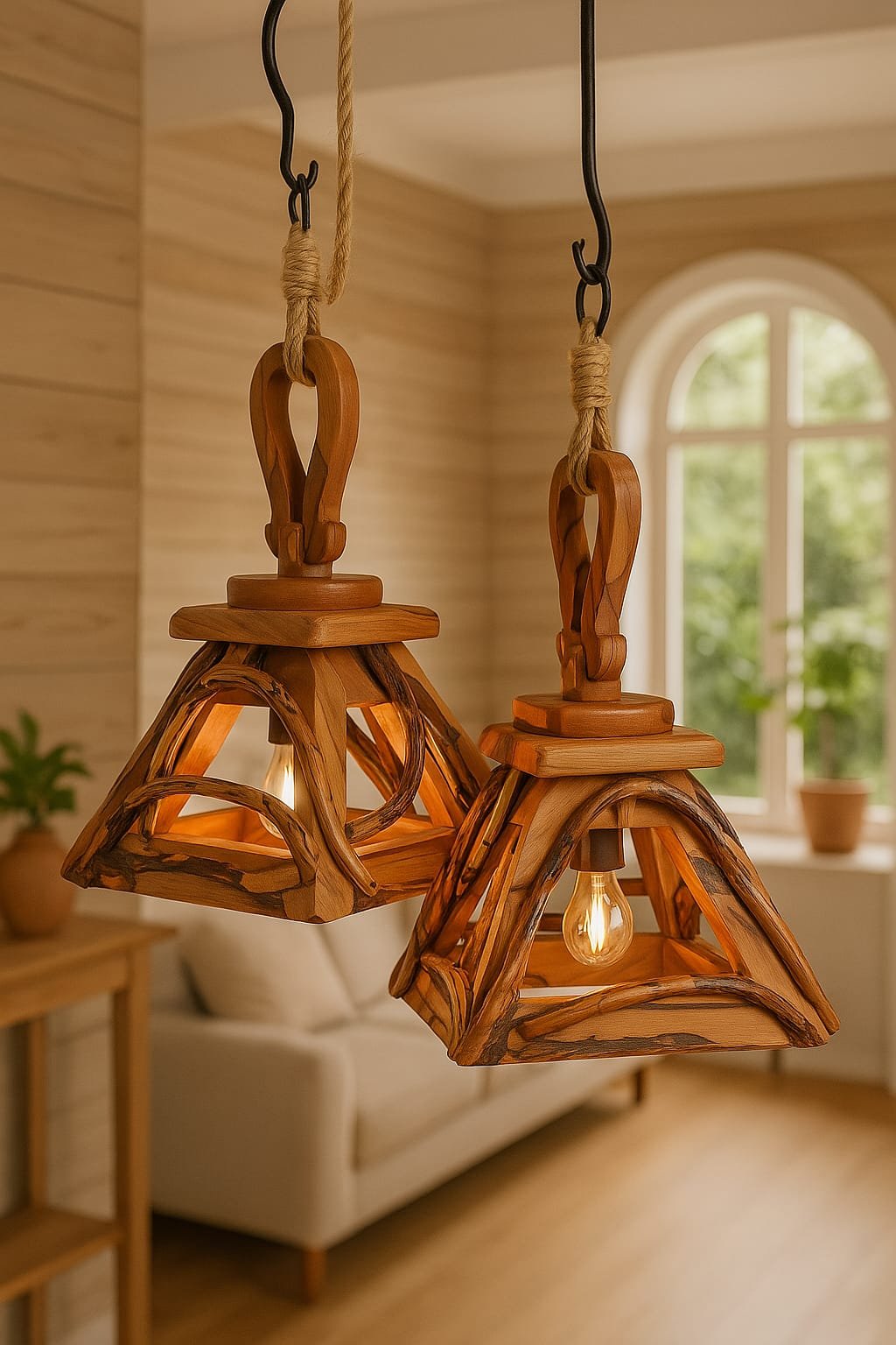 Su diseño inspirado en las raíces y la naturaleza crea un juego de luces suaves y envolventes, ideal para generar ambientes acogedores y con identidad. Cada veta, cada curva, habla de lo auténtico y lo hecho con intención.