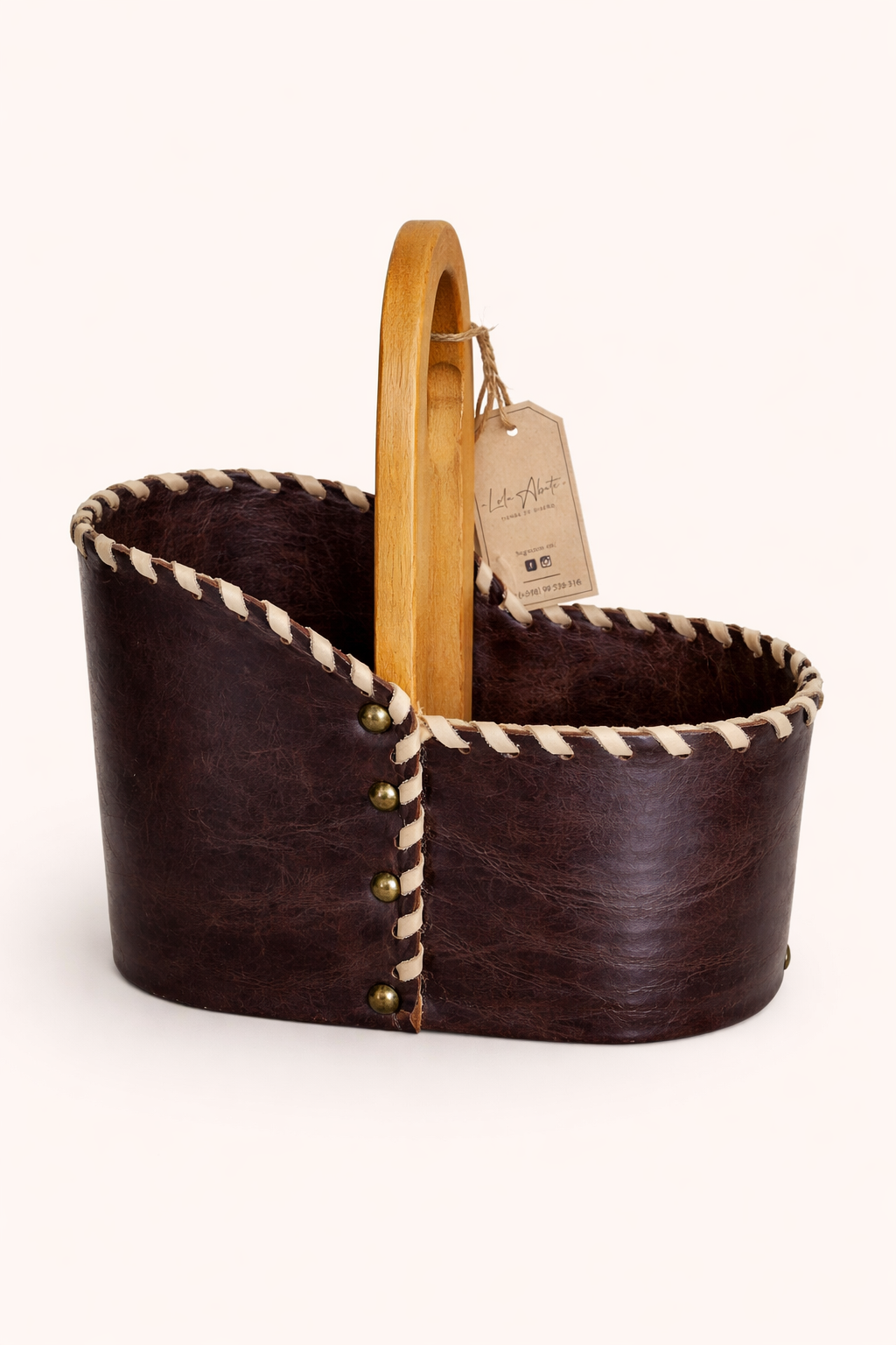 Una matera única que combina tradición, diseño y materiales nobles. Elaborada en cuero con manija de madera, esta pieza destaca por su estilo artesanal y su estética rústica, ideal para acompañar tus momentos de mate con identidad y carácter.