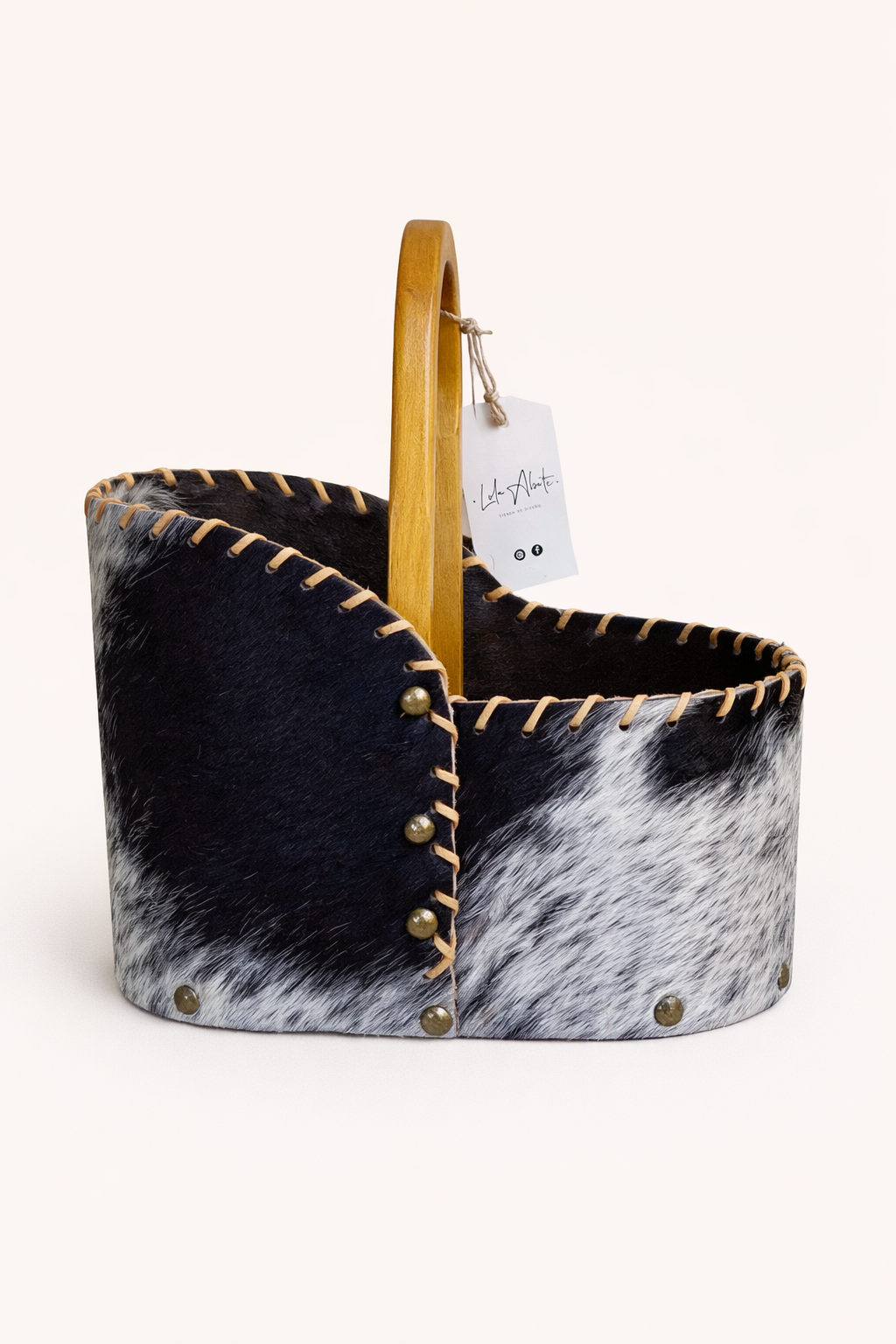 Matera Premium de Cuero Vacuno con Pelo y Madera