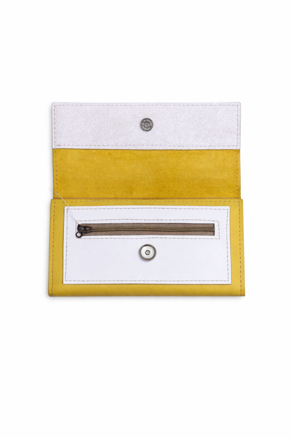 Monedero de cuero Lola Bate en tonos amarillo vibrante combinado con detalles naturales, ideal para sumar un toque de color y diseño a tu día a día. Su interior práctico cuenta con múltiples compartimentos para tarjetas, ofreciendo organización y comodidad en un formato compacto.