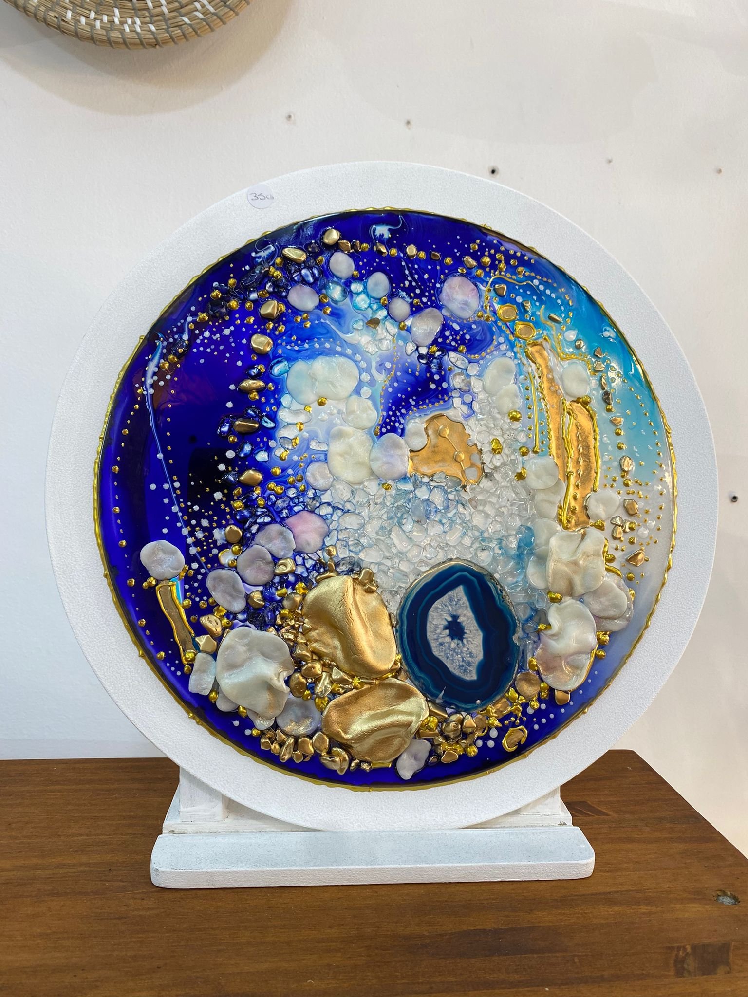 Universo Decorativo Artesanal en Resina – Diseño Geoda Azul con Ágata y Detalles Dorados X 35 CM