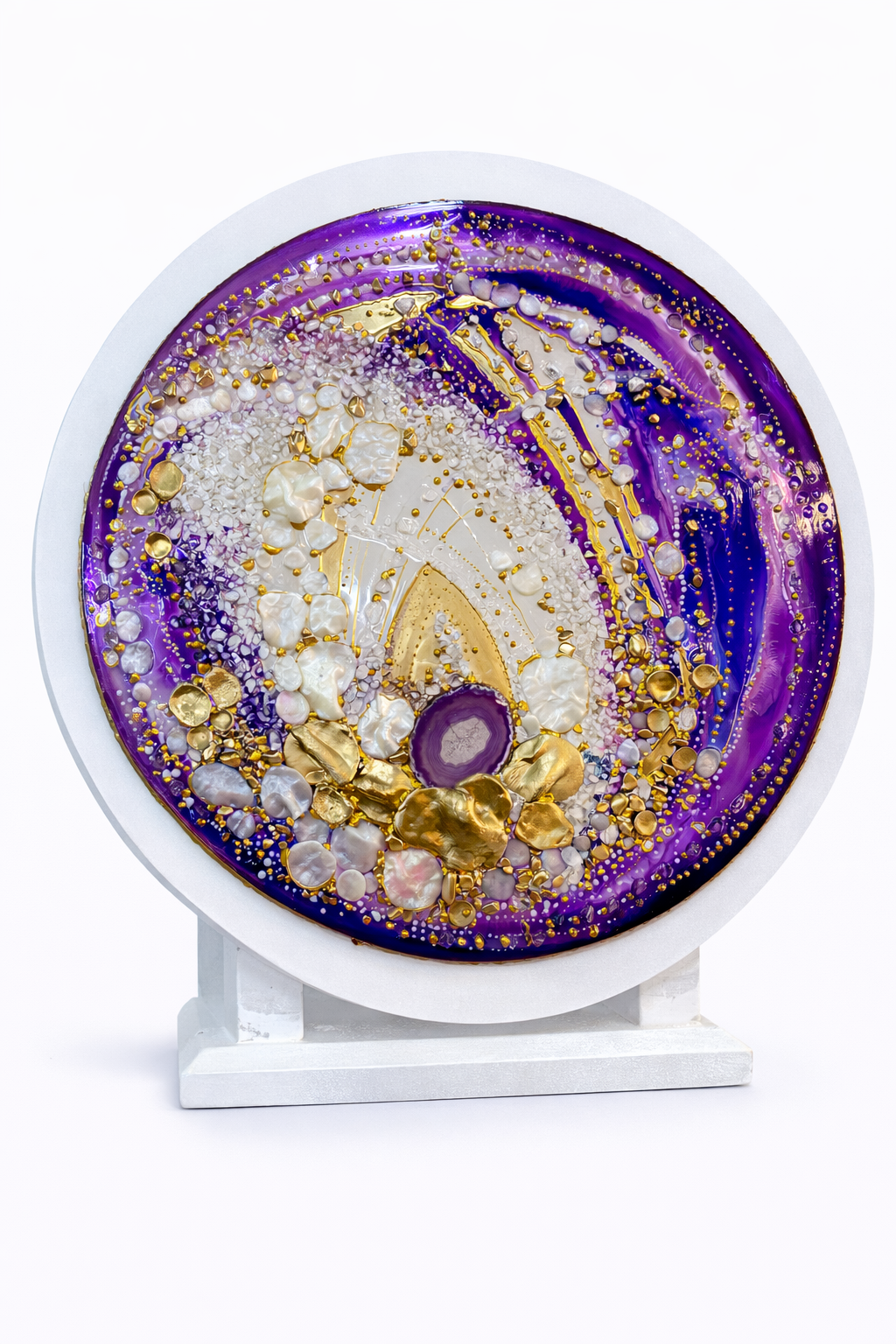Universo Decorativo Artesanal en Resina – Geoda Violeta con Ágata y Detalles Dorados X 57 CM