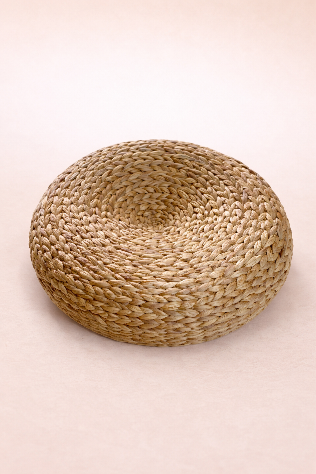 Su diseño artesanal en espiral no solo destaca visualmente, sino que invita al descanso y a crear ambientes más relajados y armoniosos. Ideal para sumar como asiento extra, apoyo o simplemente como pieza deco protagonista.