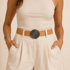 Cinto de Cuero Boho Hebilla Circular